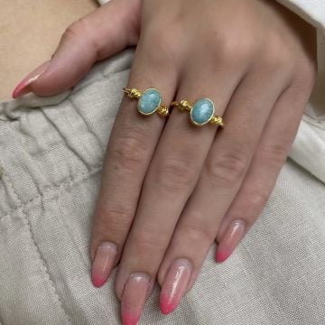925 Ayar Gümüş Larimar Taşlı Yüzük Briella